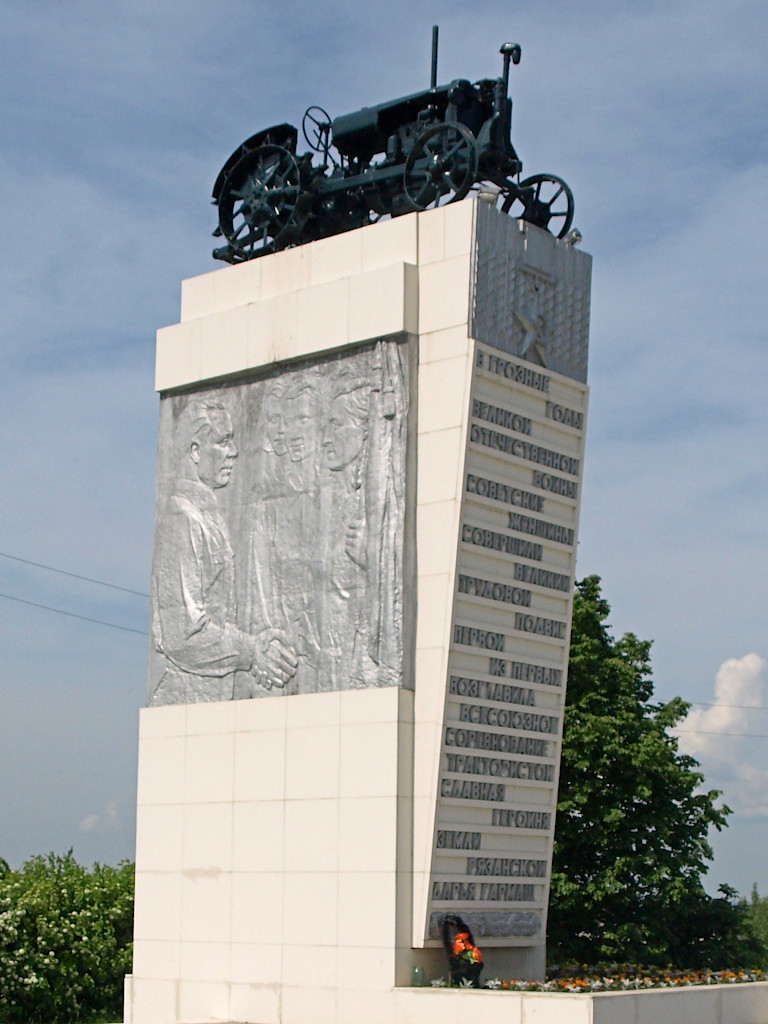 Подвиг тружеников тыла в 1941-1945 годах, как и памятники ему, прекрасно известны всем от мала до велика. Из школьных учебников истории, рассказов бабушек и дедушек, мемориальных досок и комплексов на центральных площадях. Это общий подвиг всего советского народа. В то же время были у него и отдельные имена, тысячи и миллионы имён, некоторые из которых стоят особняком. В их числе механизатор Рыбновской МТС Рязанской области, Герой Социалистического Труда Дарья Матвеевна Гармаш. Уроженка Киевской губернии, в 1932 году она бежала от голода в Украине на более благополучную Рязанщину, где её и застала Великая Отечественная война. В отличие от многих других молодых девушек, заменивших у руля трактора ушедших на фронт мужчин и учившихся этому ремеслу на ходу, Дарья Гармаш уже была достаточно опытной трактористкой, руководившей в годы войны бригадой и ставшей инициатором соревнования женских тракторных бригад в СССР, на которых её бригада победила. Полученную за победу премию в десять тысяч рублей девушки передали на строительство танковой колонны. Бригада Гармаш удерживала звание лучшей в СССР вплоть до 1947 года, когда переходящее Красное знамя было навечно передано коллективу.