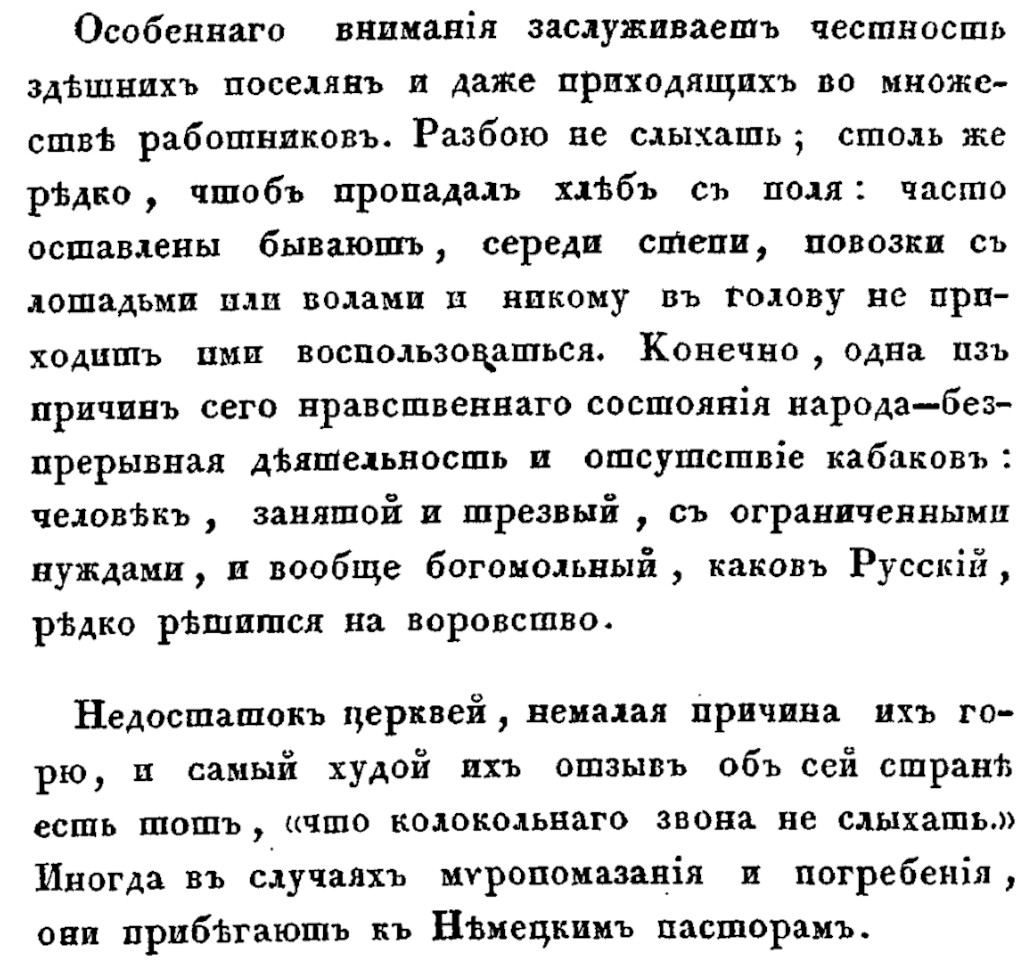 Лестного отзыва в книге удостоились хуторяне и другие жители и работники саратовского Заволжья — будущих Николаевского и Новоузенского уездов Самарской губернии. Забегая вперёд: активное строительство православных храмов, преимущественно типовых деревянных, здесь началось со второй половины 1830-х годов — вскоре после поездки Сабурова.