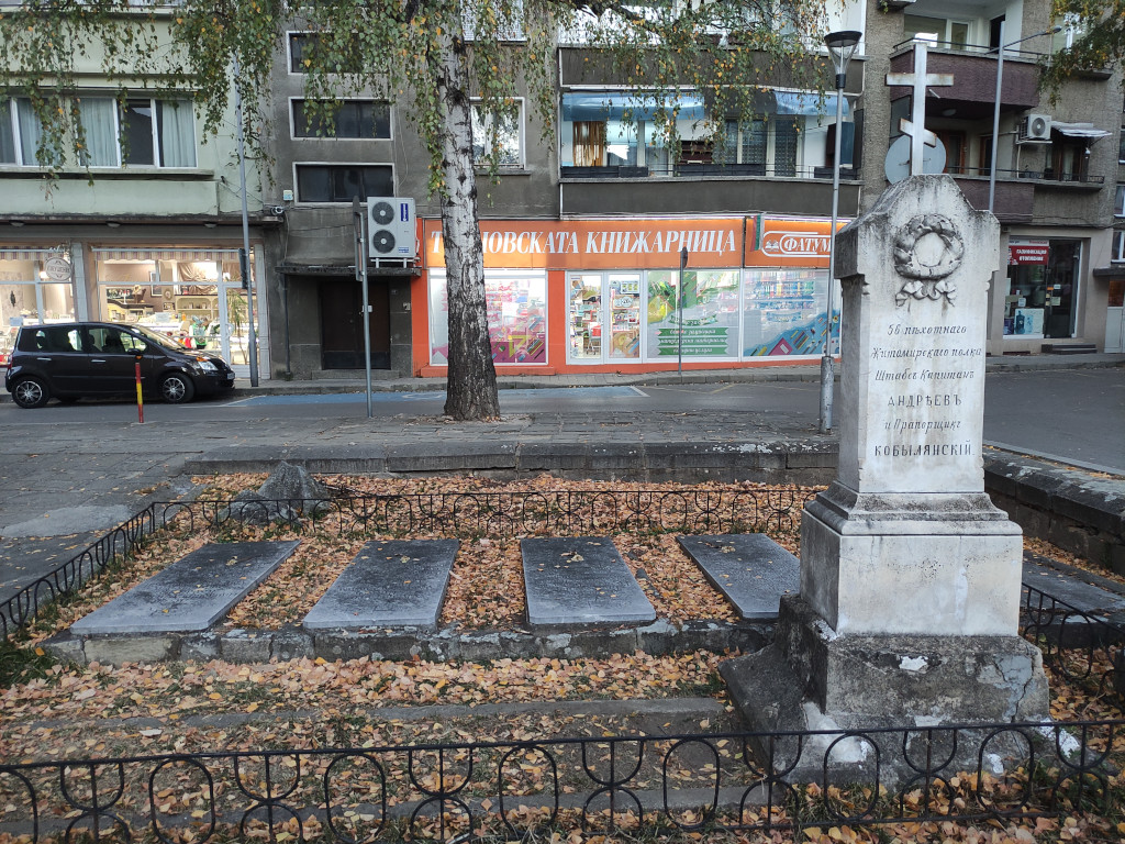 🧭 42.88298N 25.30998E (братская могила на западе города), 42.87066N 25.31387E (офицерские захоронения за ДК), 42.87162N 25.31695E (памятник Краховецкому и Николаеву), 42.87059N 25.3168E (Априловская гимназия), 42.87128N 25.31968E (Успенская церковь и памятники вокруг), 42.87855N 25.3185E (мытищинская лодка)