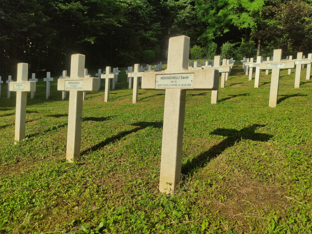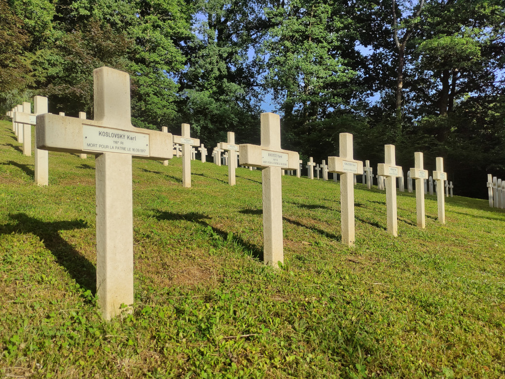 Так почему военнопленные царской армии содержались в лагере на территории союзной Франции? К чему эти подробности про Франко-прусскую войну и какое отношение всё это имеет к заглавной теме? Самое прямое: после капитуляции Франции в 1871 году регион Эльзас-Лотарингия вместе с Висамбуром отошёл к торжественно созданной в Версальском дворце во время осады Парижа единой кайзеровской Германии и оставался в её составе до конца Первой мировой. В местечке Вайлер на окраине Висамбура находился немецкий лагерь для военнопленных, где проживали и занимались принудительным трудом по большей части русские солдаты. На территории лагеря были построены несколько бараков и госпиталь, до наших дней не сохранившиеся. Осталось только кладбище, на котором помимо 179 русских захоронений также имеется братская могила 42 русских и 9 итальянцев и 30 французских могил (в основном из колониальных войск). Кроме того во Вторую мировую войну здесь были захоронены три польских военнопленных. Входную группу сегодня украшает привезённый из Тамбова православный крест.