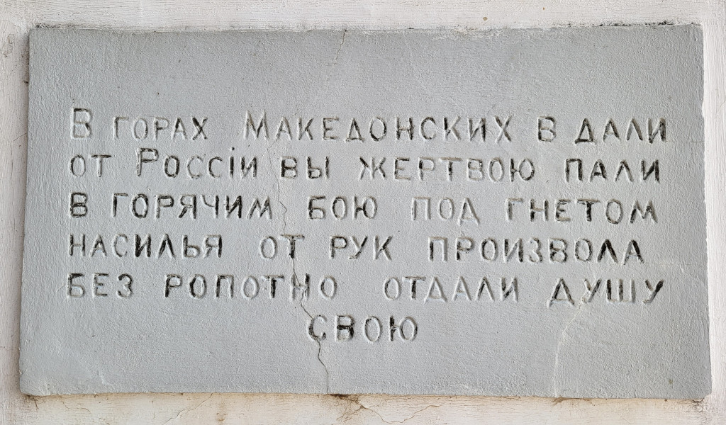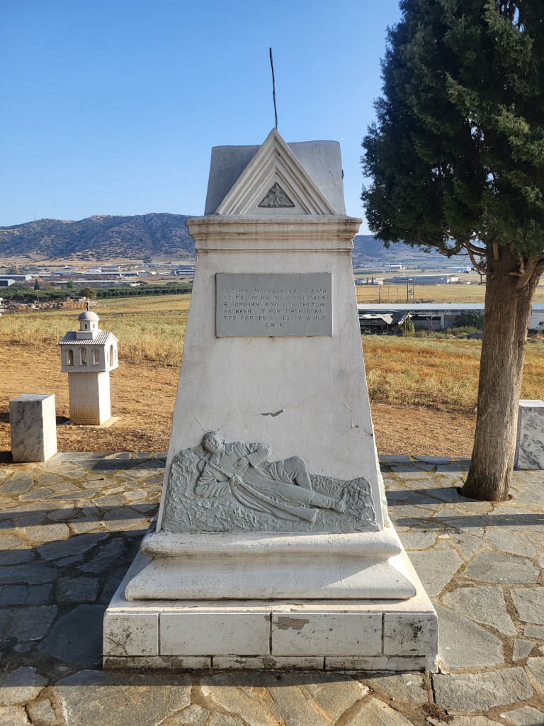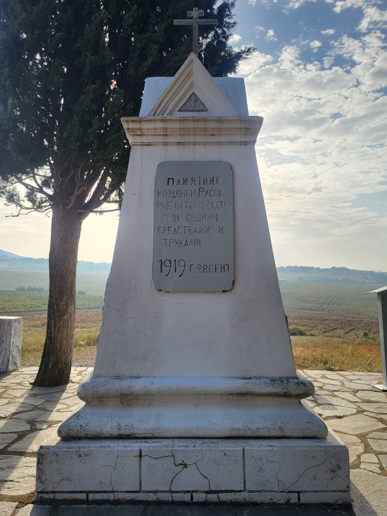 Эти детали к событиям на Салоникском фронте имеют самое прямое отношение, ведь Балканские войны часто называют прологом к Первой мировой войне, а сражались союзники, к которым на позднем этапе войны присоединилась и долго выдерживавшая нейтралитет Греция, именно с Болгарией (и поддерживавшей её с севера Германией). В 1919 году силами и средствами солдат 21-го русского рабочего батальона 3-й категории был создан памятник «всем павшим товарищам от царившего произвола за период 1916-1919 годов». Разрешение на создание монумента было дано только с условием, что на нём не будет «надписей, которые могли бы задевать Французскую республику». Автором обелиска с барельефами солдат и крестом на вершине является художник Наседкин, открытие состоялось 28 сентября (11 октября) 1919 года.