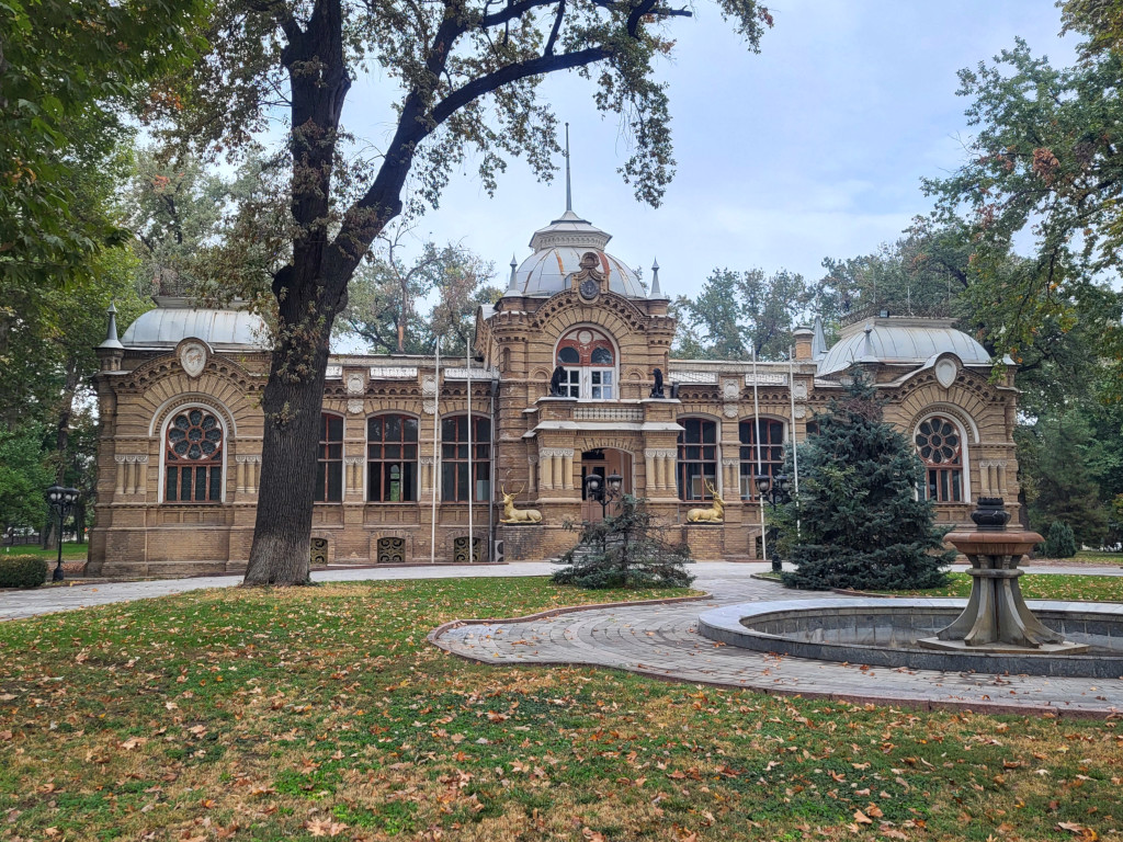 Великий князь Николай Константинович Романов (двоюродный брат императора Александра III) в 1874 году оказался в центре семейного скандала и за любовную связь с американской танцовщицей Фанни Лир и кражу бриллиантов из Мраморного дворца был выдворен из Санкт-Петербурга. За последовавшие семь лет скитаний князь остепенился и проявил себя в научно-исследовательской работе Русского географического общества, но в 1878 году обвенчался с дочерью городского полицмейстера Надеждой Дрейер и окончательно впал в немилось дома Романовых. Брак был официально не признан и расторгнут, и летом 1881 года Николай Константинович поселился в Ташкенте вместе со своей морганатической супругой. В 1889-1891 годах по проекту архитекторов В. С. Гейнцельмана и А. Л. Бенуа для князя был построен двухэтажный дворец из обожжённого серо-жёлтого кирпича (из которого строились почти все городские храмы, школы и государственные учреждения после завоевания Туркестана). В левом крыле дворца размещались апартаменты великого князя, в правом — его жены. В ссылке Николай Романов продолжал заниматься научной деятельностью и собрал во дворце в числе прочего большую коллекцию оружия, статуэток, картин, украшений, бухарских, афганских, туркменских и персидских ковров. С приходом Советской власти перед своей смертью в 1918 году князь передал дворец вместе со всеми накопленными реликвиями под музей искусств, открытый в 1919 году. После переезда музея в другое здание с 1940-х годов дворец князя Романова превратился в дворец пионеров. В поздний советский период здание занимал музей антиквариата и ювелирного искусства. Ныне дворец используется в качестве дома приёмов МИД Узбекистана.