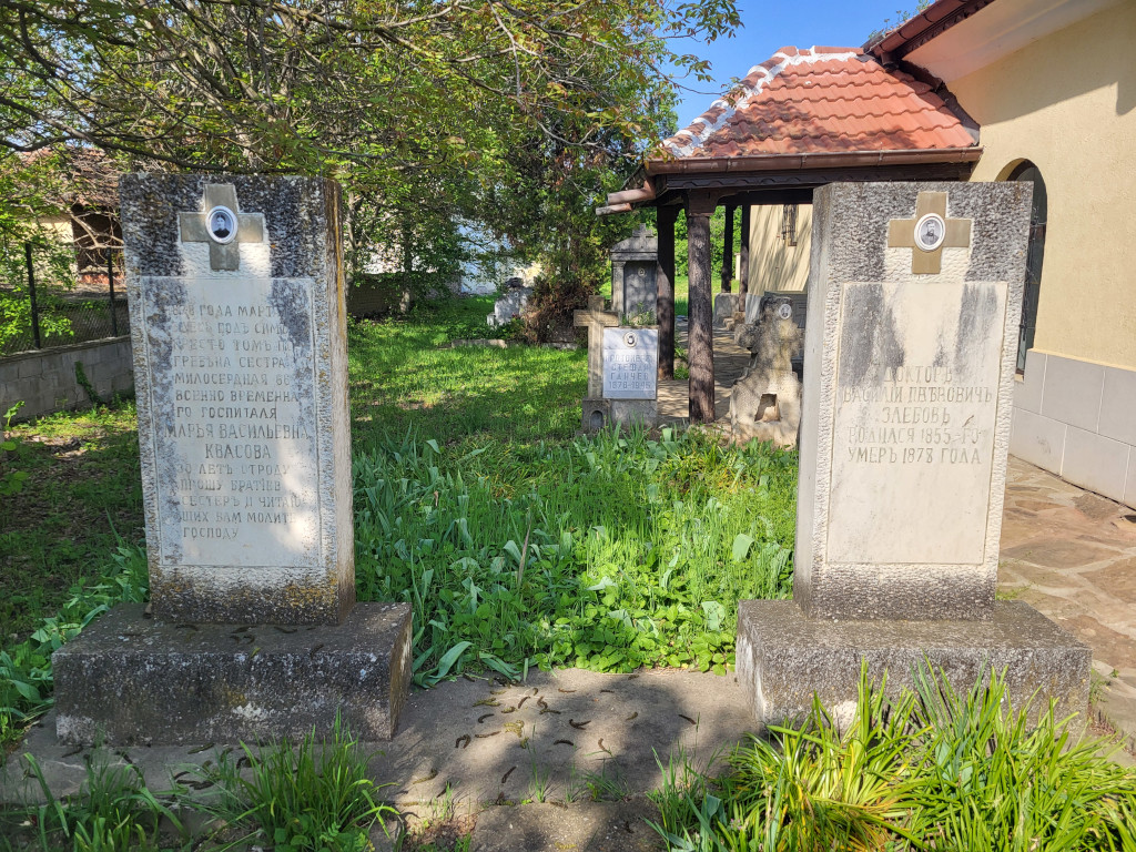 Тиф унёс жизни и работавших в госпитале сестры милосердия Марьи Васильевны Квасовой и доктора Василия Павловича Злебова. Похоронены они в ограде церкви Святого Тирона, где прекрасно сохранились оба надгробных памятника.