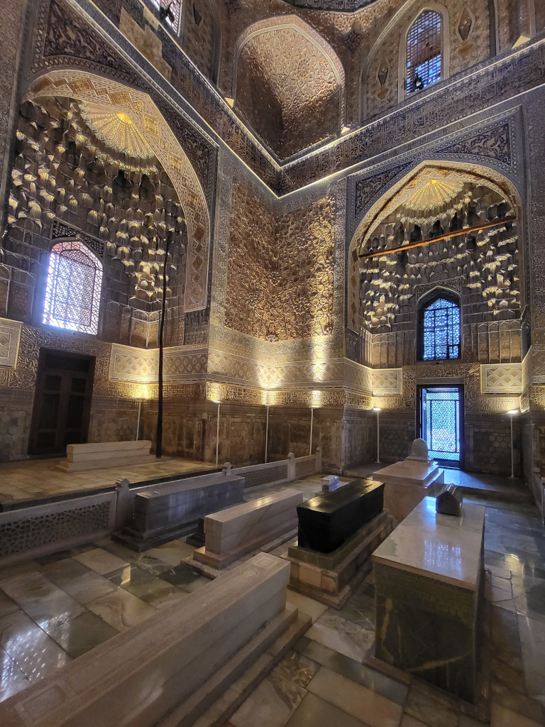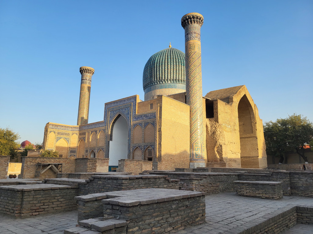 Гур-Эмир — главная усыпальница Тимуридов в Самарканде. Величественный мавзолей был заложен в 1403 году по инициативе Амира Тимура (Тамерлана) после смерти его внука и наследника Мухаммада Султана Мирзы. Архитектором здания в стиле азери выступил иранский мастер Махмуд Исфахани, вчерне завершено оно было за год, а уже в 1405 году во время военного похода на Китай умер и сам Тамерлан. Похоронить его решено было в новом самаркандском мавзолее, как считается, вопреки последней воле великого правителя и завоевателя. Через несколько лет власть перешла в руки Улугбека — другого выдающегося Тимурида, прославившегося не столько расширением территории империи, как его дед, сколько в роли просветителя, математика и астронома. В правление Улугбека Гур-Эмир стал семейным склепом представителей династии.