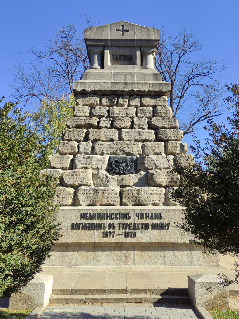 В паре кварталов к востоку от памятника царю-освободителю расположен Докторский сад, в центре которого установлен памятник «медицинским чинам, погибшим в Турецкую войну 1877-1878». Впервые вопрос о создании в болгарской столице мемориала русским медикам, сёстрам милосердия и санитарам, погибшим и умершим от болезней в ходе войны, был поднят в 1883 году. На его создание ушёл год, проект составили русский архитектор Антоний Осипович Томишенко и итальянец Луиджи Фарабоско. Выполнен монумент в форме усечённой пирамиды, сложенной из каменных блоков с фамилиями погибших (всего 531), с гранитным саркофагом на вершине. Сегодня «докторский» памятник входит в число наиболее ярких достопримечательностей Софии. Ежегодно в конце февраля, в канун годовщины Сан-Стефанского мира, болгарское общество Красного Креста и священнослужители Русской посольской церкви служат у памятника панихиду и организуют торжественные мемориальные мероприятия.