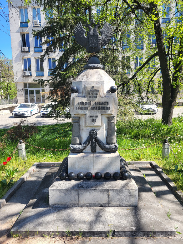 Последние три объекта в нашем списке расположены чуть в стороне от исторического центра города. На русском участке Центрального софийского кладбища установлен крест «в память русских воинов, за веру, царя и Отечество и за свободу народов славянских живот свой положивших».