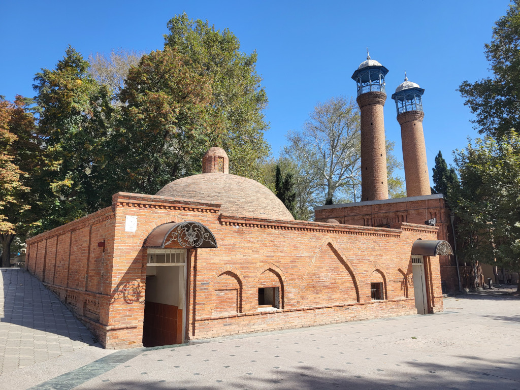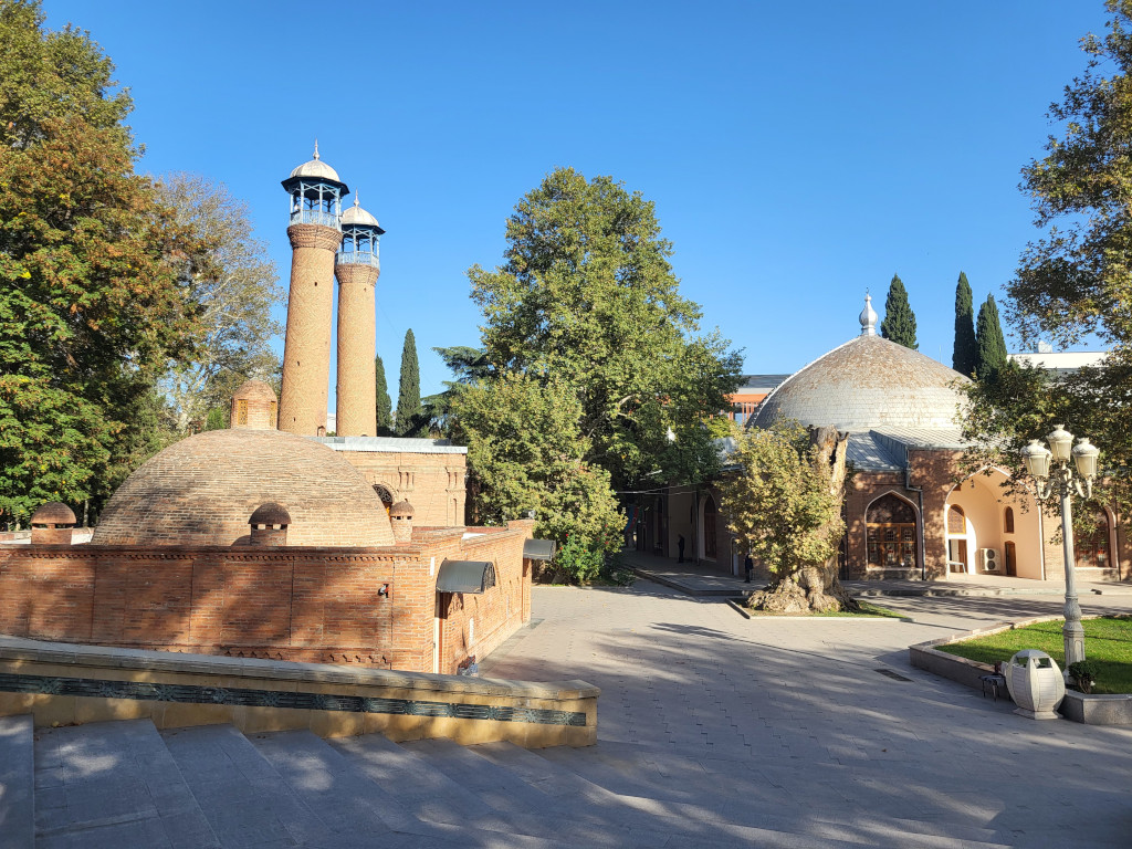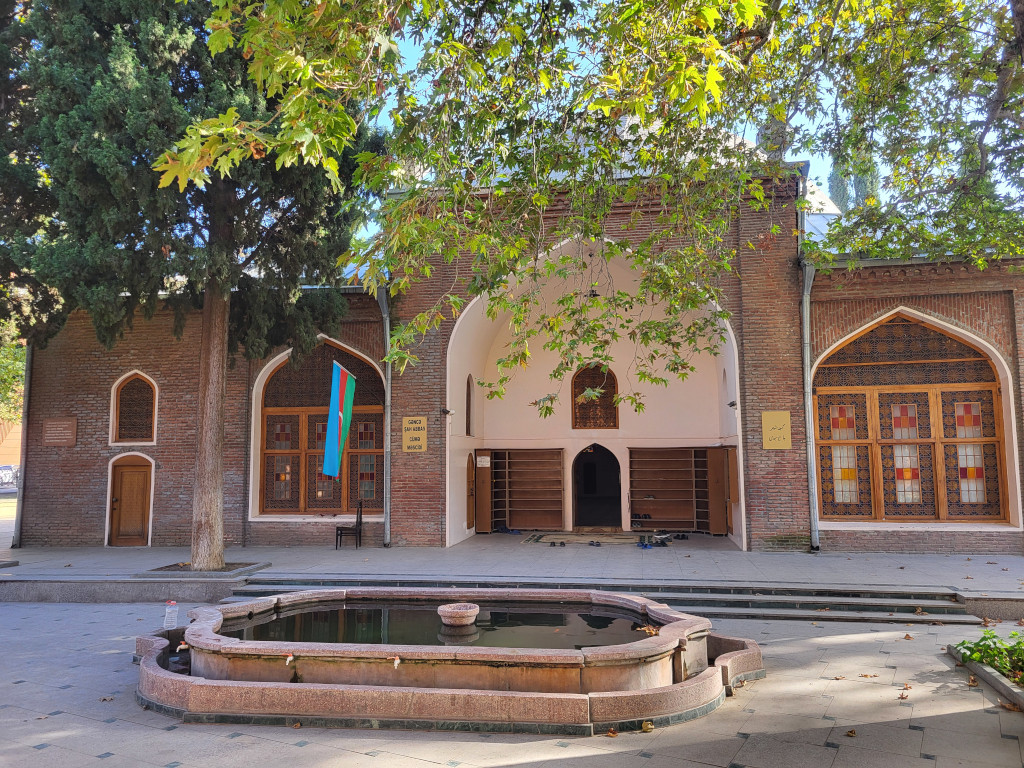 Рядом, в центральном сквере расположены другие две работы Баха ад-Дина: джума-мечеть и чокак-хамам. Первая была возведена в 1601-1606 годах по инициативе персидского шаха из династии Сефевидов Аббаса I Великого (из-за чего она также известна как мечеть шаха Аббаса). В 1776 году рядом выстроили второй корпус мечети с двумя минаретами. Третья постройка, примыкающая к мечети — это, предположительно, бывшая баня начала XVII века. В советские годы главное здание занимал музей азербайджанского ковра и народно-прикладного искусства.