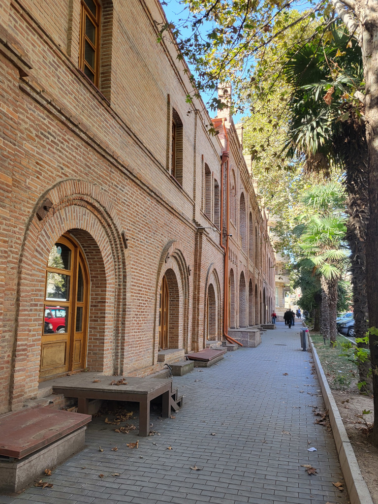 Правое здание — караван-сарай шаха Аббаса 1606-1614 годов постройки. Считается, что оба комплекса были построены по проектам архитектора Шейха Баха ад-Дина, чьё имя носит и улица, на которой они стоят.