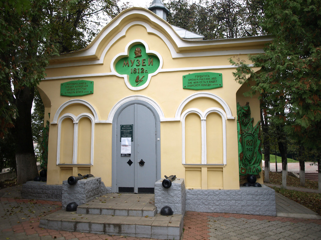 В Малоярославце имеется целый ряд памятных мест, связанных с октябрьским сражением Отечественной войны. Сегодня мы посетим часовню-музей и прилегающий к ней сквер на пересечении улиц Кутузова и Московской. Часовня-памятник была построена в 1860 году тщанием участника сражения за Малоярославец, отставного майора Ф. М. Максимова в честь погибших однополчан. До революции и закрытия она была приписана к Николаевскому Черноостровскому монастырю. В конце 1940-х годов в здании открылся военно-исторический музей, который в 1987 году сменила диорама «Сражение при Малоярославце в октябре 1812 года» работы народного художника РСФСР Е. И. Дешалыта.