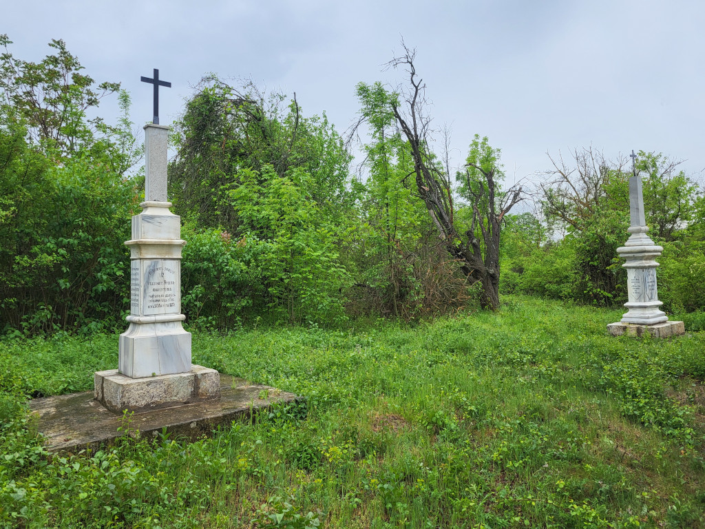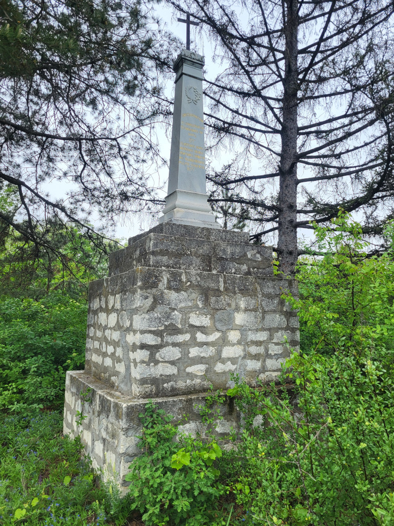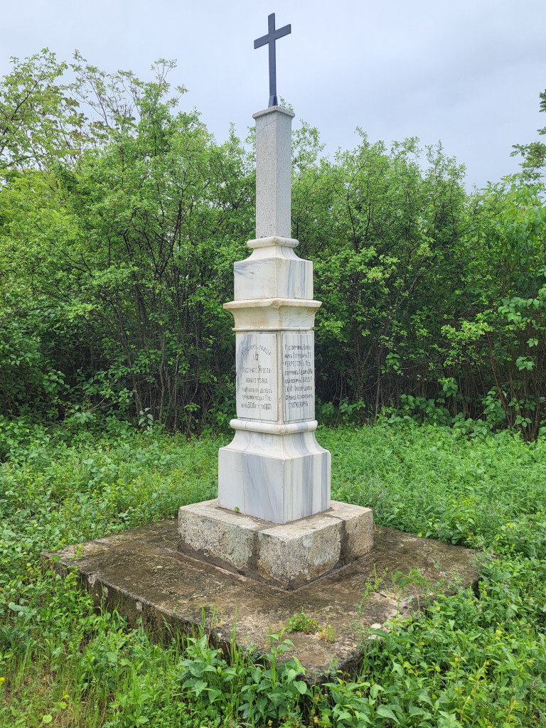 Большинство памятников, посвящённых третьему штурму, стоят в центре Плевена в парке Скобелева, о котором поговорим в другой раз отдельно, равно как и про штурм Гривицкого редута и Гривицкий румынско-русский мемориальный парк. Сегодня же мы с вами посетим памятники, расположенные на юго-восточной окраине Плевны — непосредственно на месте боёв, где русские атаковали со стороны селений Брестовец и Радишево. В наши дни эта территория застроена частными домами и дачами, частично заброшенными, из-за чего поиск русских братских могил может превратиться в настоящее приключение. Начнём рассказ с двух памятников, найти которые сравнительно легко, так как к ним ведёт едва различимая тропинка от крупного жилого комплекса. Левым обелиском отмечена братская могила офицеров 117-го пехотного Ярославского полка: подпоручиков В. П. Перекрестова и А. М. Свидерского, прапорщика Ф. И. Статкевича, майора Д. В. Соколова, поручиков А. В. Захарова и К. Б. Аренда, штабс-капитана И. Л. Прокофьева и прикомандированных к полку 2-го Фанагорийского гренадерского полка подпоручика Волкова и 15-го пехотного Шлиссельбургского полка прапорщика Шестаковского.