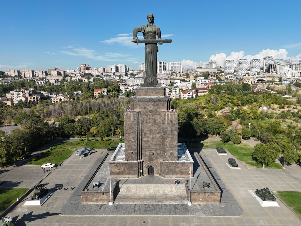Главный памятник участникам Великой Отечественной войны в Ереване — монумент Мать Армения, возвышающийся над городом в парке Победы. Его гранитный постамент с военным музеем внутри был построен по проекту архитектора Рафаела Исраеляна в 1950 году. Изначально на нём стояла скульптура И. В. Сталина работы Сергея Меркурова, демонтированная после развенчания культа личности в 1962 году.